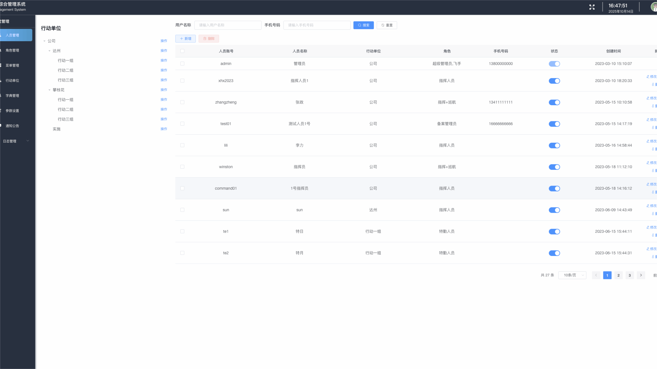 User & Access Control: Manage personnel, define roles/permissions, and customize system menus.